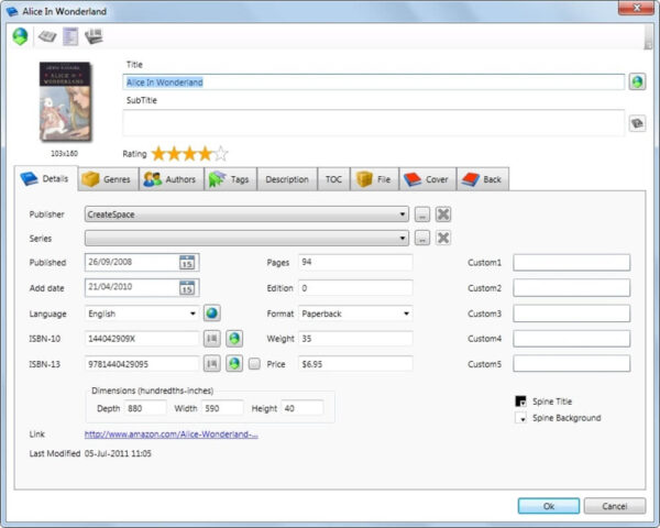 Apart from the aforementioned details, you can also assign additional data to your items. This includes entering the purchase price, weight, dimensions, as well as adding tags and genres.