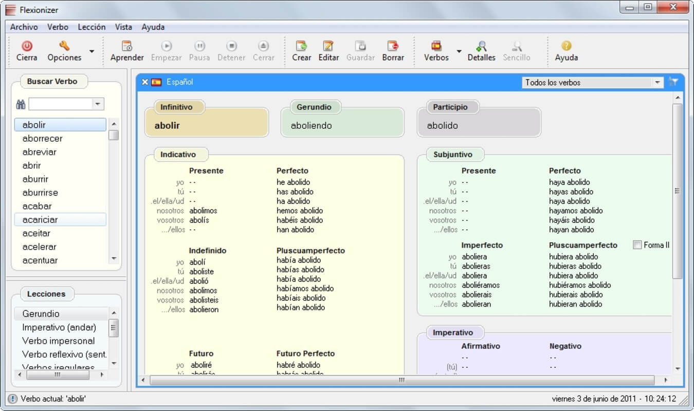 Flexionizer is a modern software to learn and to look up verb conjugations. The databases of Flexionizer provide an English verb library containing more than entries of verbs.